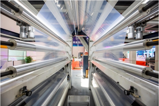 尤其在 PE 包裝收縮膜領(lǐng)域,五層共擠工藝不僅延續(xù)了減薄降本的共性?xún)?yōu)點(diǎn),還極大地提高了薄膜的光學(xué)性能和展示效果。數(shù)據(jù)顯示,采用我司五層阻隔薄膜吹膜機(jī)制備的收縮膜,在保持優(yōu)秀機(jī)械性能的同時(shí),其光學(xué)性能實(shí)現(xiàn)了質(zhì)的飛躍,透明度和印刷適性大幅提升,助力客戶(hù)打造出更具吸引力的終端展示效果。